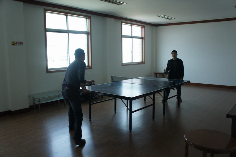 公司为丰富职工的业余生活,建了健身房和乒乓球室