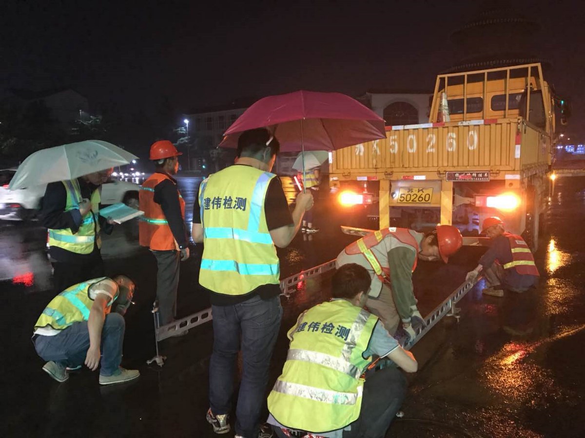 近日,文昌路(广陵大桥-扬州西互通)提升改造工程正加紧施工中,本次提升改造工程东起广陵大桥西至扬州西互通,全长约17公里,路幅34~60米,主要包括道路、交通、排水、桥涵等改造提升工程。扬州市建伟建设工程检测中心有限公司负责此次改造工程的质量检测工作。 文昌路提升改造工程时间紧,施工战线长,为了不给市内交通带来影响,建伟检测公司进行道路弯沉检测时,全部采取晚间半幅路面不封闭检测,检测时路面车流量大,危险系数高。为全力保障此次检测任务,建伟检测公司动员公司所有男职工,制定轮班计划,召开专题会议,强调检测的规范性、数据的真实性和有效性,以及检测报告的及时性,同时着重强调检测安全工作,将这项检测任务作为公司目前的头等大事来办。近20天来,公司职工克服困难,轮班连续作业,竭力配合市政府施工进度要求,切实做好检测服务。